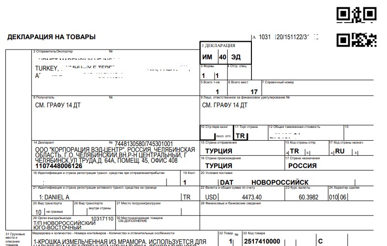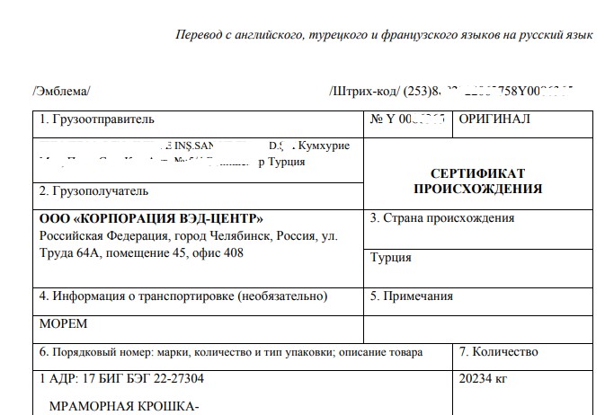 В нашу компанию обратился покупатель из России для приобретения мраморной крошки из Турции. У клиента была потребность приобретения товара на территории России.