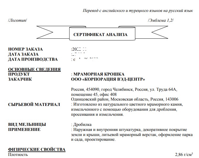 - Перевод сертификата анализа и сертификата соответствия с турецкого на русский язык.